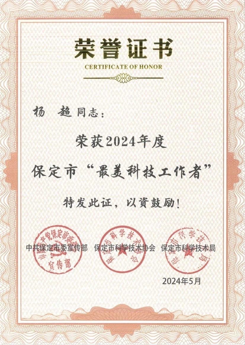近日,保定市市委宣傳部、市科學(xué)技術(shù)協(xié)會(huì)、市科技局聯(lián)合開展了2024年保定市“全國科技工作者日”評(píng)選活動(dòng),經(jīng)組織推薦和評(píng)審專家委員會(huì)綜合評(píng)比、公示,巨力索具股份有限公司黨總支書記、總裁楊超榮獲“最美科技工作者”稱號(hào)。