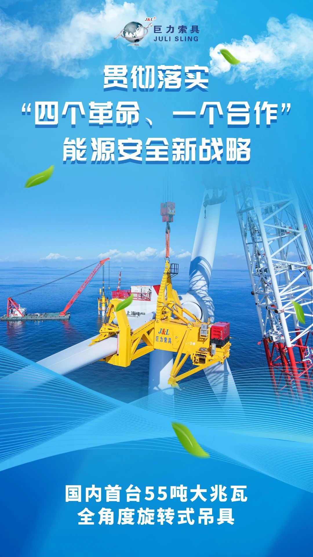本期,巨力索具官微發(fā)布能源安全新戰(zhàn)略十周年系列報(bào)道之一,看能源安全新戰(zhàn)略背景下,巨力索具繪就的風(fēng)電領(lǐng)域節(jié)能降碳和諧畫(huà)卷,感受奮進(jìn)路上結(jié)出的累累碩果。