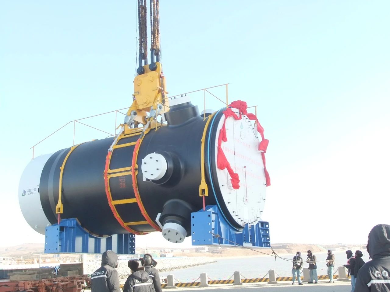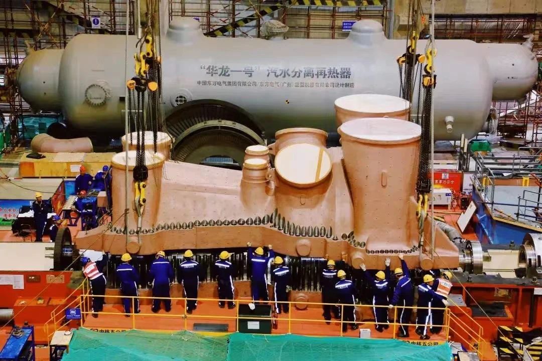 2017年11月28日,首臺(tái)蒸汽發(fā)生器吊裝就位。