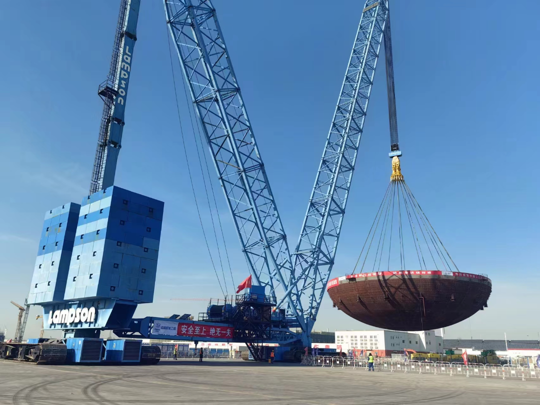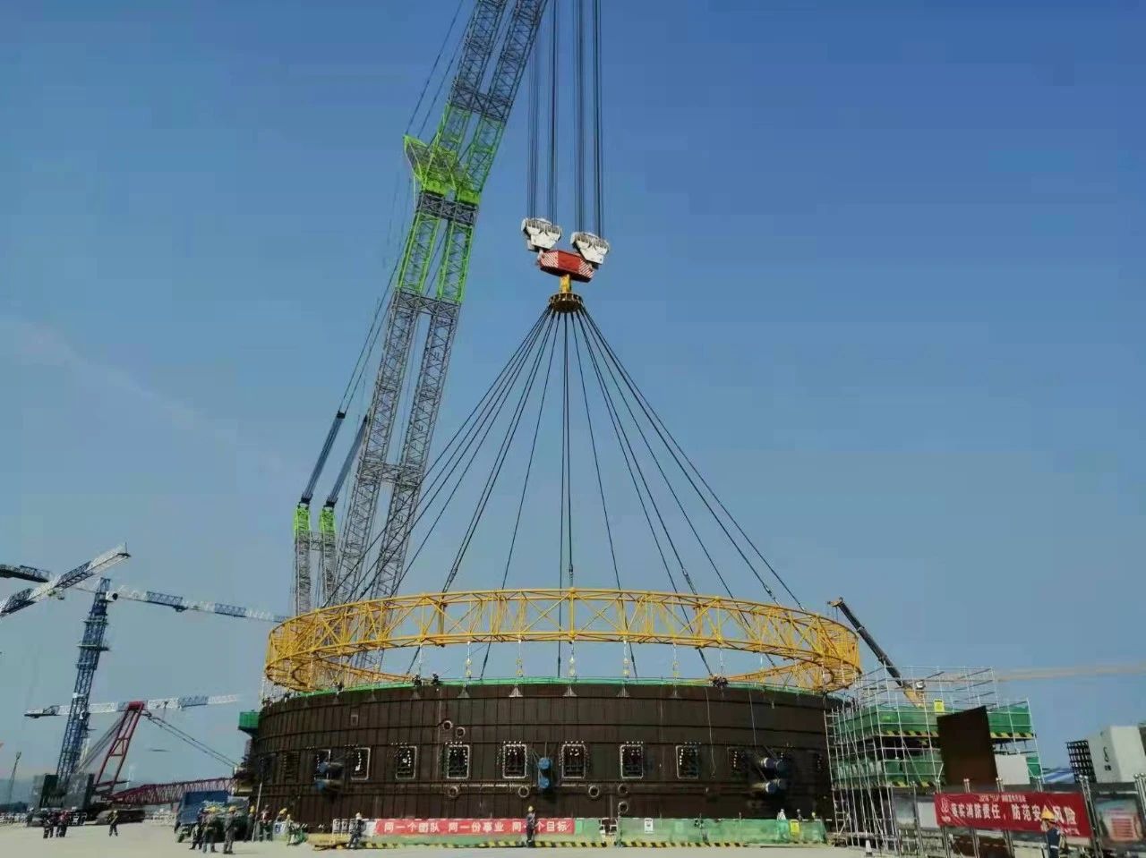 2017年5月25日,“華龍一號(hào)”核電站全球首堆福清核電5號(hào)機(jī)組穹頂?shù)跹b開始,吊裝的整套吊裝工具均由巨力索具提供,吊裝系統(tǒng)包含1140噸級(jí)的圓形過度梁,16個(gè)大型吊耳,16根100噸級(jí)的閉式澆筑鋼絲繩索具、16套1140噸級(jí)的可調(diào)拉桿裝置,為穹頂?shù)捻樌跹b提供了可靠的吊裝索具。