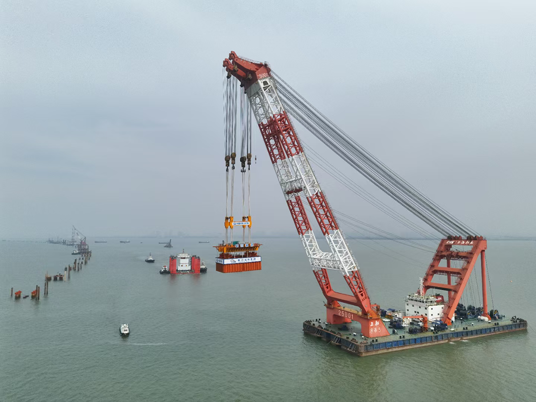 在項(xiàng)目建設(shè)及吊裝過程中,巨力索具工程項(xiàng)目團(tuán)隊(duì)與總包單位齊心協(xié)力,共同打造生態(tài)施工標(biāo)桿,采用“搭積木”式預(yù)制工藝,大幅減少海上作業(yè)時(shí)間達(dá)80%,在施工期間實(shí)現(xiàn)了對(duì)中華白海豚棲息地的零干擾。同時(shí),項(xiàng)目部聯(lián)合海事部門構(gòu)建起“海陸空”立體防護(hù)網(wǎng),嚴(yán)格落實(shí)環(huán)保要求,實(shí)現(xiàn)廢水處理“零排放”,為海洋生態(tài)環(huán)境保護(hù)貢獻(xiàn)力量。