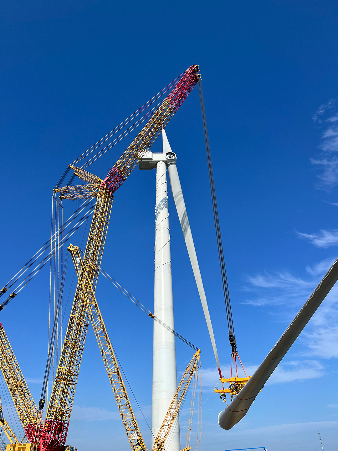 8月29日,由巨力索具股份有限公司為東方電氣風(fēng)電股份有限公司專(zhuān)項(xiàng)研制的26MW海上風(fēng)電機(jī)組用大噸位單葉片吊具及大扭矩盤(pán)車(chē)系統(tǒng),已于山東東營(yíng)風(fēng)電裝備測(cè)試認(rèn)證創(chuàng)新基地成功完成吊裝作業(yè)。這是目前國(guó)內(nèi)外最大兆瓦海上風(fēng)電機(jī)組葉片吊裝的優(yōu)異解決方案,創(chuàng)新型解決了最大葉片的吊裝難題。