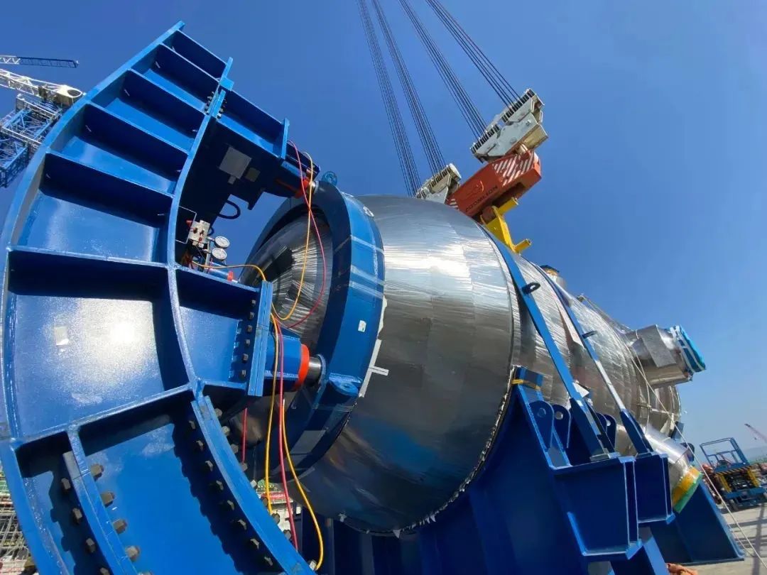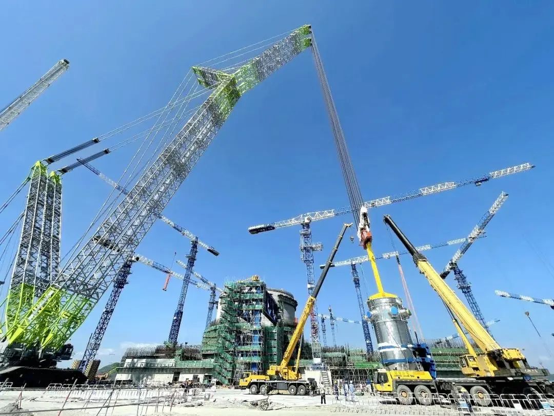 2021年10月19日,由中國核電工程有限公司總承包的第15臺核電機(jī)組——“華龍一號”批量化建設(shè)漳州核電1號機(jī)組反應(yīng)堆壓力容器安全穩(wěn)妥吊裝成功,整個(gè)吊裝過程中所用的吊具均由巨力索具提供,開創(chuàng)了國內(nèi)自主三代核電反應(yīng)堆壓力容器在核島外部翻轉(zhuǎn)后垂直引入的“華龍新記錄”。