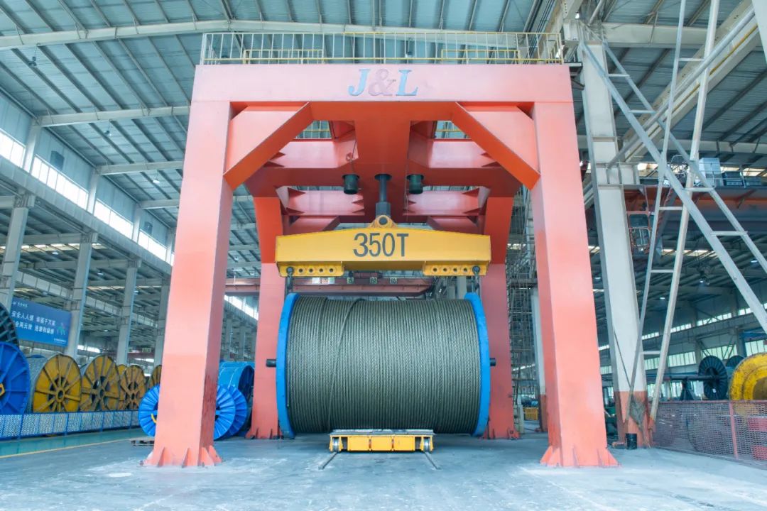 巨力索具為“秦航工2300”號(hào)提供起升、變幅、拋錨三大系統(tǒng)在內(nèi)的全船鋼絲繩配套,包括本次超千噸級(jí)吊裝所用全套索具系列產(chǎn)品。其中為滿足“秦航工2300”號(hào)亞洲第一吊高的施工需求,船舶工程師設(shè)計(jì)了超高的2300噸吊機(jī)主臂架,使主變幅鋼絲繩長(zhǎng)度必須滿足主臂架設(shè)計(jì)要求,巨力索具項(xiàng)目團(tuán)隊(duì)根據(jù)設(shè)計(jì)方案結(jié)合生產(chǎn)工藝進(jìn)行改造提升,最終實(shí)現(xiàn)單根鋼絲繩長(zhǎng)度超過(guò)10730米,凈重達(dá)215噸成功交付使用,該鋼絲繩成功投入使用標(biāo)志著我國(guó)鋼絲繩產(chǎn)業(yè)又向前邁出一步,既彰顯了巨力索具制造實(shí)力,也為我國(guó)在超長(zhǎng)超重鋼絲繩領(lǐng)域發(fā)展畫(huà)上濃墨重彩的一筆。
