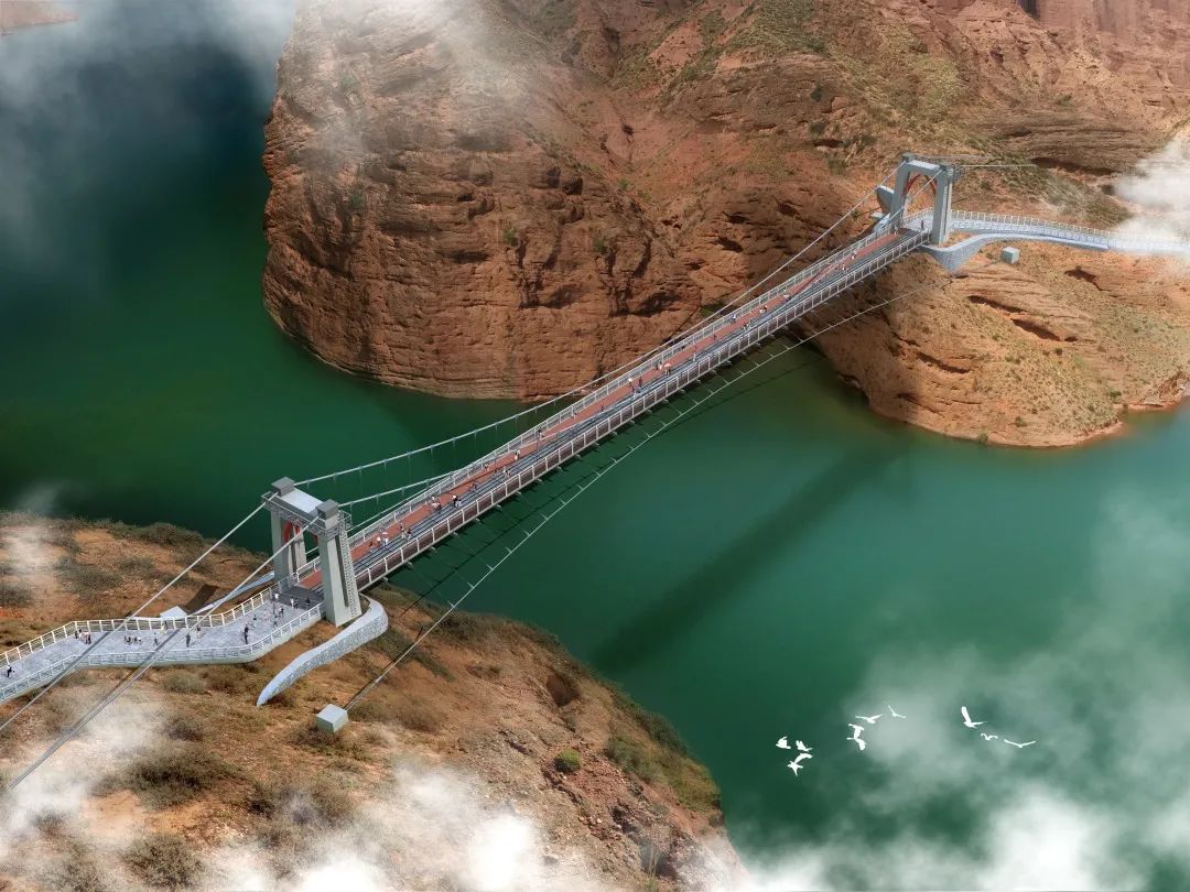 青??膊祭皡^(qū)人行懸索橋全程跨度110米,橋梁寬6米,人行道凈寬5米。大橋位于李家峽水庫入口附近,橋梁連接水庫入口兩岸,兩端連接旅游人行棧道,坎布拉丹霞地貌多以奇峰、峭壁為其主要地貌特征,生態(tài)環(huán)境脆弱,大橋兩岸地勢陡峭,工程地質(zhì)條件極為復(fù)雜,對產(chǎn)品要求極高。