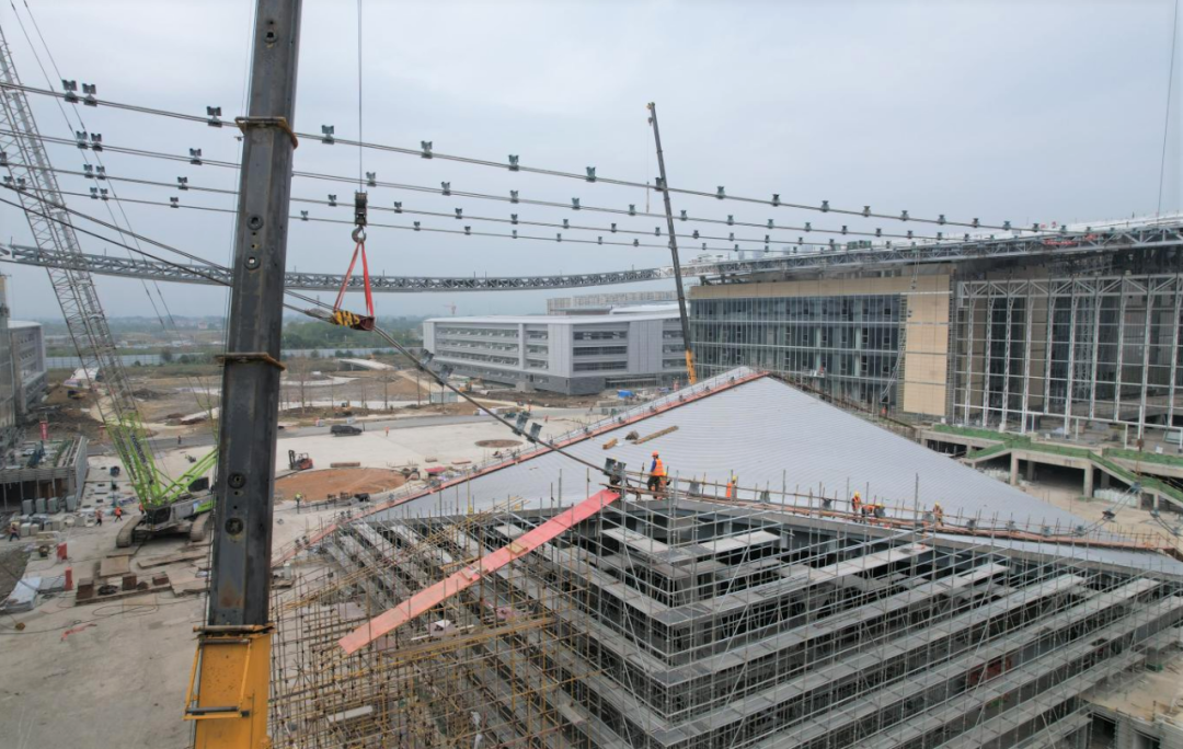 近期,由巨力索具參建的杭州中法航空大學(xué)項(xiàng)目迎來重要節(jié)點(diǎn),位于50米半空中的公共中心組團(tuán)大屋面鋼結(jié)構(gòu)拉索全部完成,由此,長395米、寬160米的巨型“機(jī)翼”初具雛形,也為大學(xué)整體工程在今年二季度竣工奠定了扎實(shí)基礎(chǔ)。