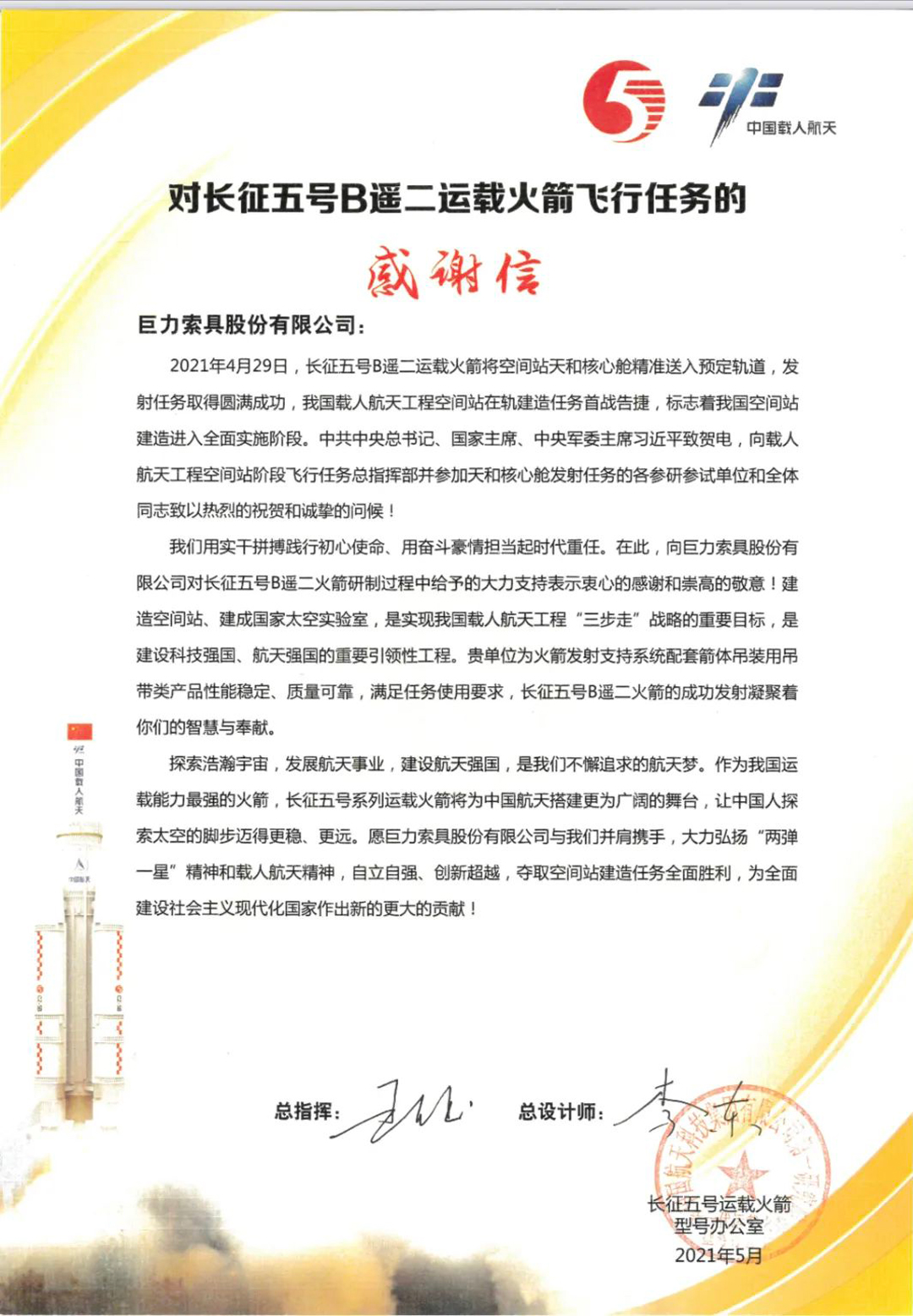 座談會(huì)上,雙方就航天產(chǎn)品的吊裝方案、未來大型火箭的吊裝、吊具的通用化設(shè)計(jì)以及無吊點(diǎn)吊裝等智能化設(shè)備進(jìn)行討論。巨力索具憑借多次為神舟飛船系列、嫦娥系列、長(zhǎng)征運(yùn)載火箭系列、天宮系列、天問系列提供定制吊裝產(chǎn)品及吊裝方案的實(shí)踐經(jīng)驗(yàn)給予專業(yè)答復(fù)。首都航天表示感謝并對(duì)巨力索具在航天領(lǐng)域的專業(yè)性、創(chuàng)新性表示認(rèn)可。