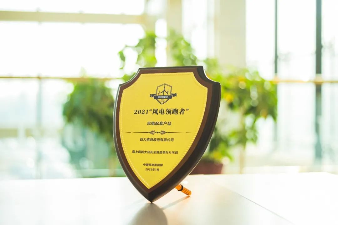 2022年1月8日,由中國風(fēng)電新聞網(wǎng)主辦的2021(首屆)“風(fēng)電領(lǐng)跑者”技術(shù)創(chuàng)新論壇暨頒獎盛典在北京成功舉行。巨力索具憑借“國內(nèi)首臺50噸大兆瓦全角度海上單葉片吊具”榮獲2021年度“風(fēng)電領(lǐng)跑者”最佳服務(wù)產(chǎn)品榮譽(yù)稱號。