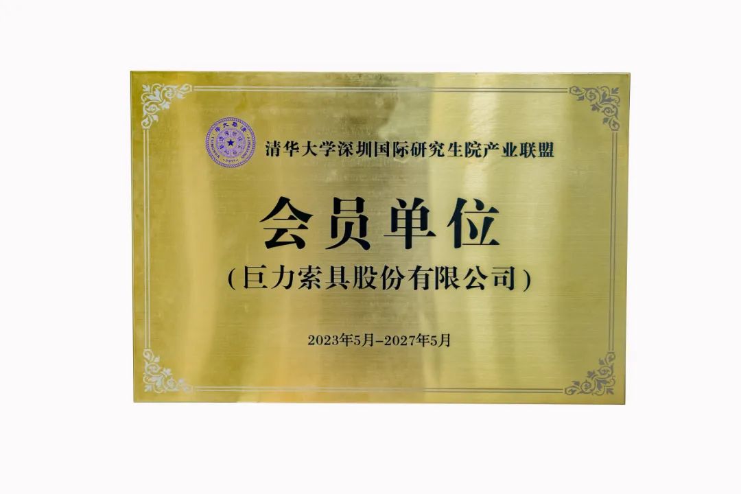2023年7月31日,巨力索具正式納入清華大學(xué)深圳國際研究生院產(chǎn)業(yè)聯(lián)盟會(huì)員單位,雙方在巨力索具總部科技中心舉行了授牌儀式。