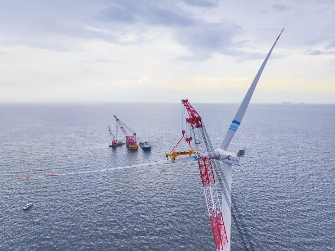 據(jù)悉,本次吊裝的風(fēng)電機(jī)組單支葉片長111.5米、重42噸,葉輪掃風(fēng)面積40627平方米。